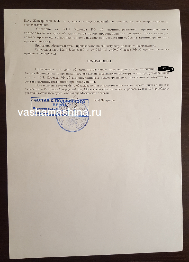 Спасибо юристам дорожного адвоката Екатерине и Алексею за помощь в суде по статье 12.27 грозило лишение. Но опытные действия юристов в суде оставили меня с правами, а они мой хлеб все таки.